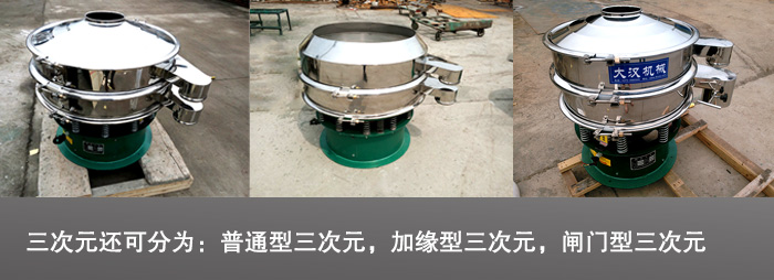 三次元振動篩是一種高精度細粉篩分設備,適用于粒,粉,粘液等物料的篩分。而三次元振動篩其工作原理于旋振篩大致相同,其不同的是三次元還可分為:普通型三次元,閘門型三次元,加緣型三次元。此振動篩也可以多層篩分。